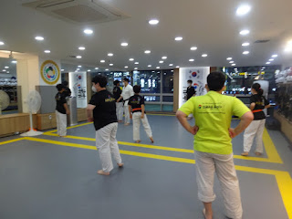 몸풀기도 같이 하고 태권도 동작도 배우고 겨루기도 하고